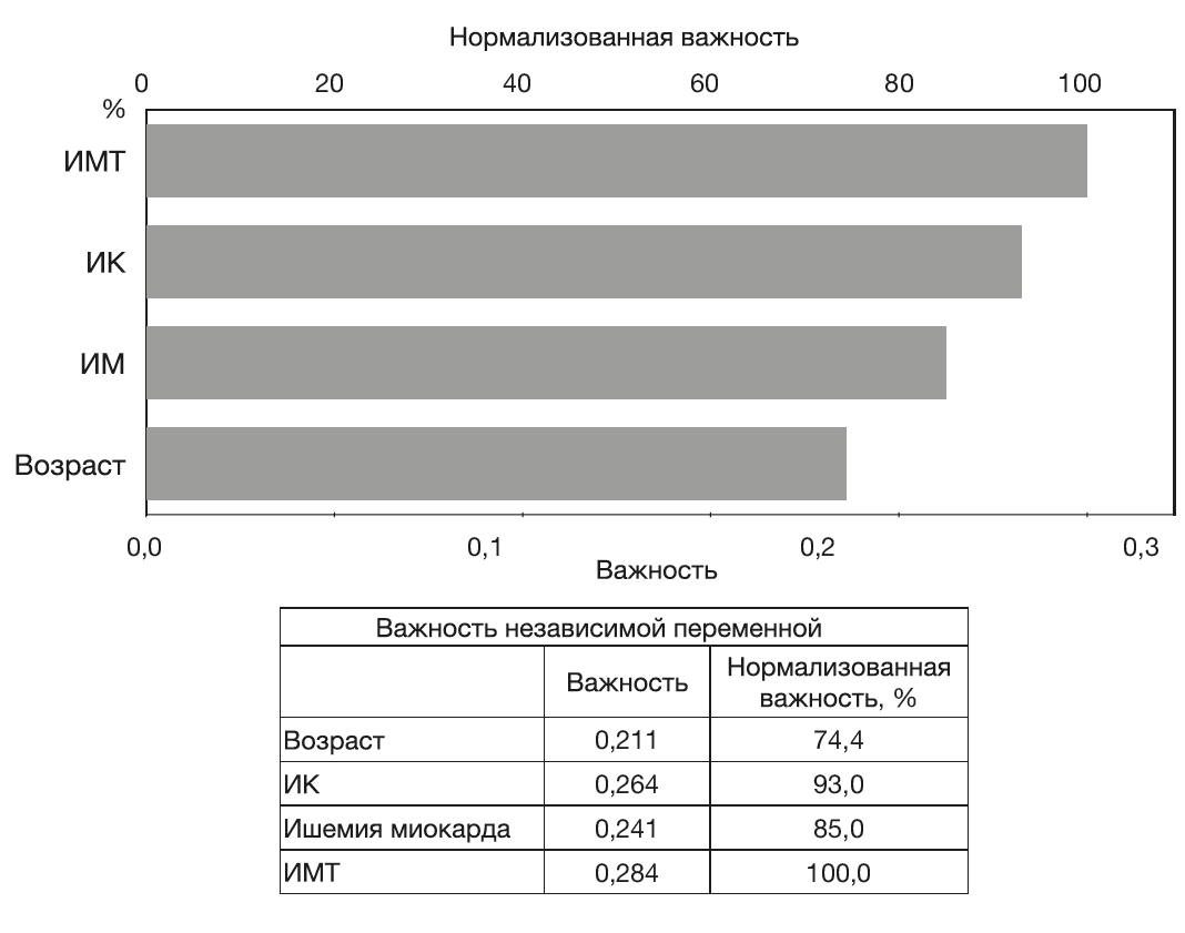 Ожирение – наиболее значимый фактор развития СССУ у пациентов с ФП после процедуры Сox-Maze IV, с нормализованной важностью 100%. Данный факт подтверждается анализом Roc-кривой (рис. 2).