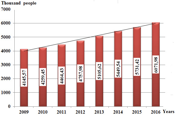 Figure 1 – The total population of Lebanon in 2009-2016, thousand people