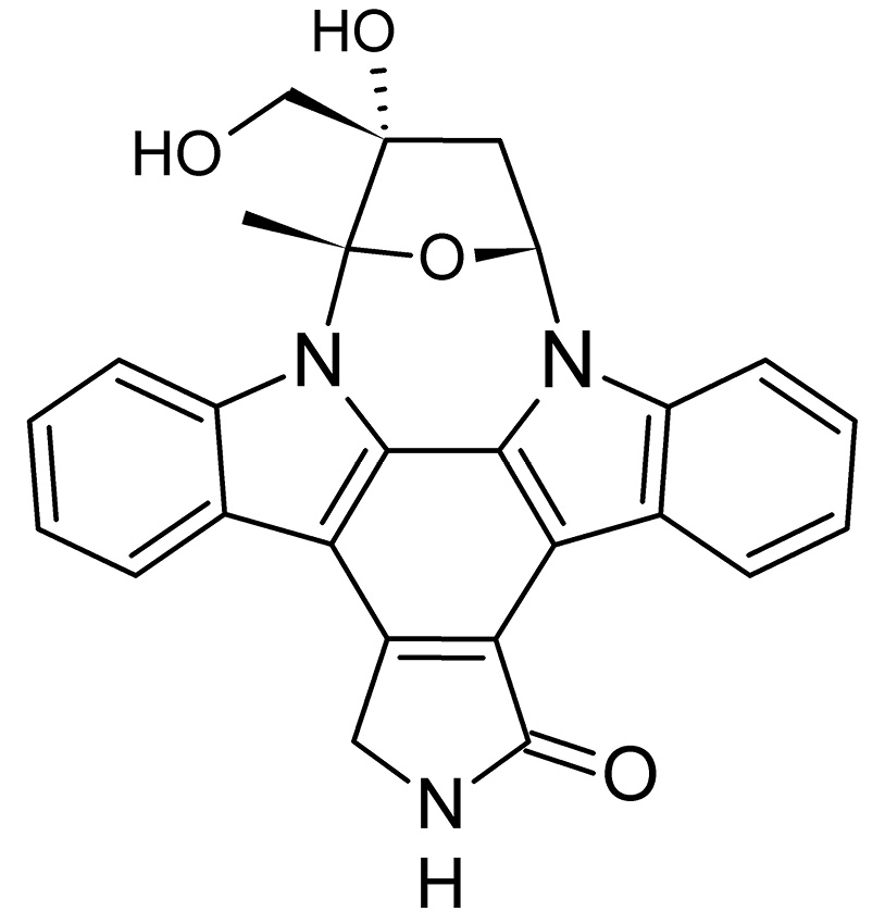 The most extensive, biologically significant and studied in detail is the subclass of 11,12-dihydroindolo[2, 3-a]carbazole derivatives, including mainly compounds having indolo[2, 3-a]pyrrolo[3,4-c]carbazole ring, in which 2 indole fragments are linked through a benzene ring with an amide or imide group. The indole moieties are linked through 1 or 2 bonds to the carbohydrate moiety. At the same time, this subclass also includes a small group of compounds that do not include an additional pyrrole ring in their composition [18].