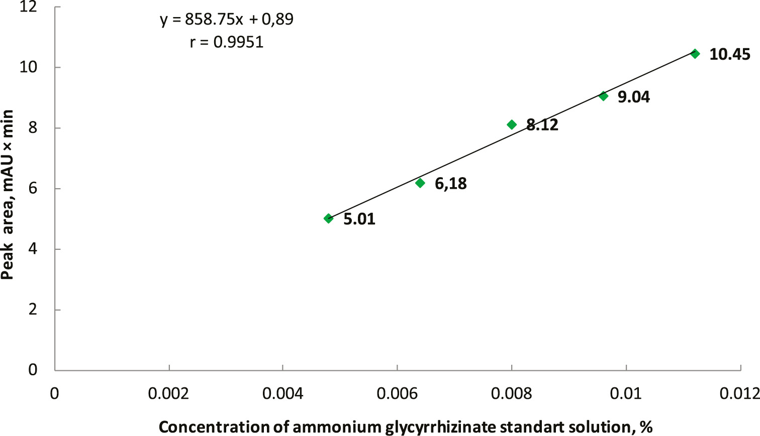 Ammonium glycyrrhizinate | 1 | 8.13 | Хm = 8.12 S2 = 0.002417 SD = 0.04916 RSD = 0.82% |
