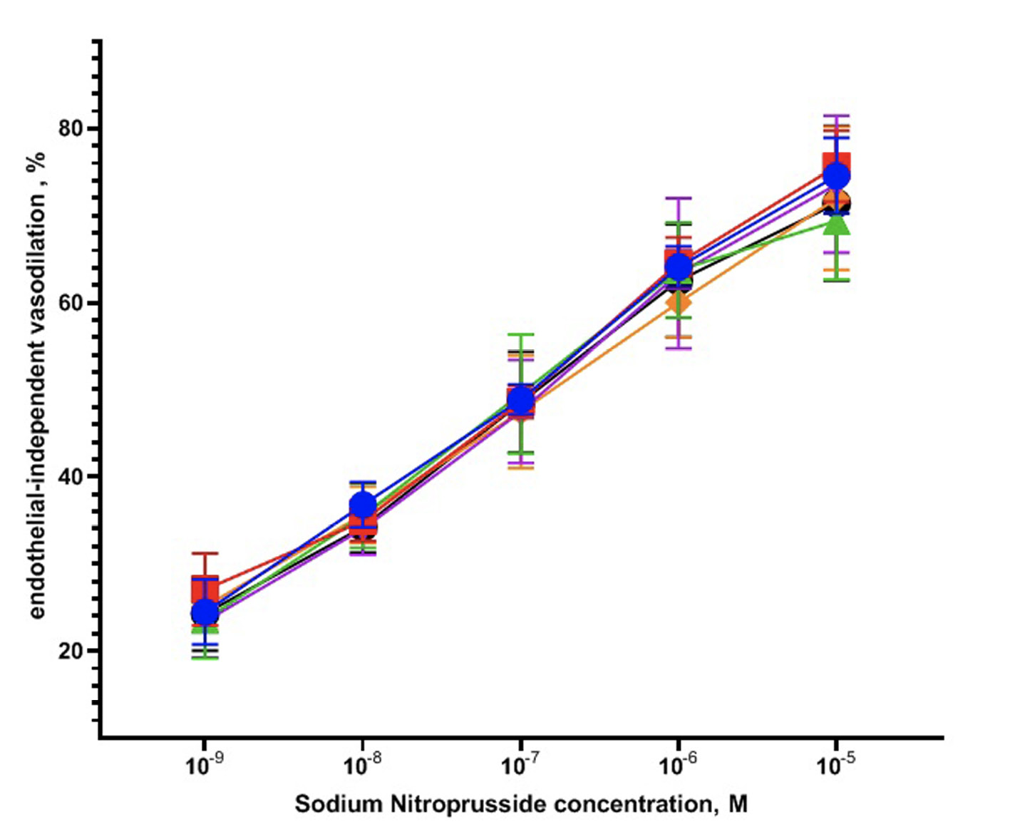At the same time, the assessment of endothelium-independent vasodilation in response to SN did not reveal statistically significant differences between the experimental groups (Fig. 6).