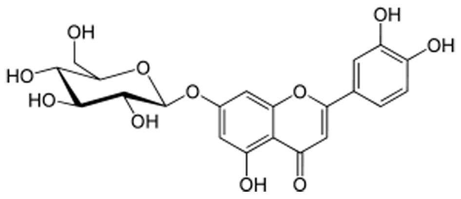 A solution of cynaroside in 70% alcohol was used as a standard sample (Fig. 1). The cynaroside standard sample complies with the requirements of the Pharmacopoeial Monographs (PMs) and was provided for the research by the Research Equipment Sharing Center Center of SamSMU Institute of Pharmacy.