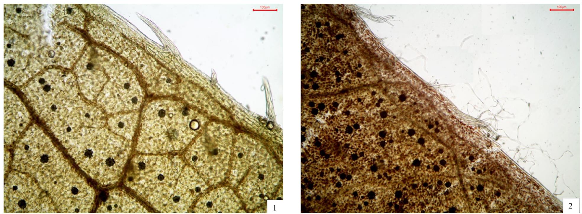 The research of microscopic characteristics of the species under study was carried out according to General Pharmacopoeia Monograph.1.5.3.0003.15 “Microscopic and microchemical research techniques of medicinal plants and herbal medicinal products” (the Russian Federation State Pharmacopeia, the XIVth ed.3) on the “Biomed 6” microscope at ×100 magnification. Visualization of diagnostic characteristics was carried out using a Levenhuk C310 NG digital video camera (China).