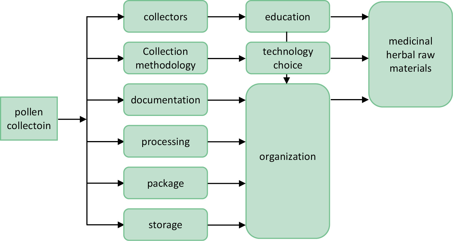 Figure 1 – Diagram of proper pollen harvesting for medicines production (A.A. Taube, 2021)