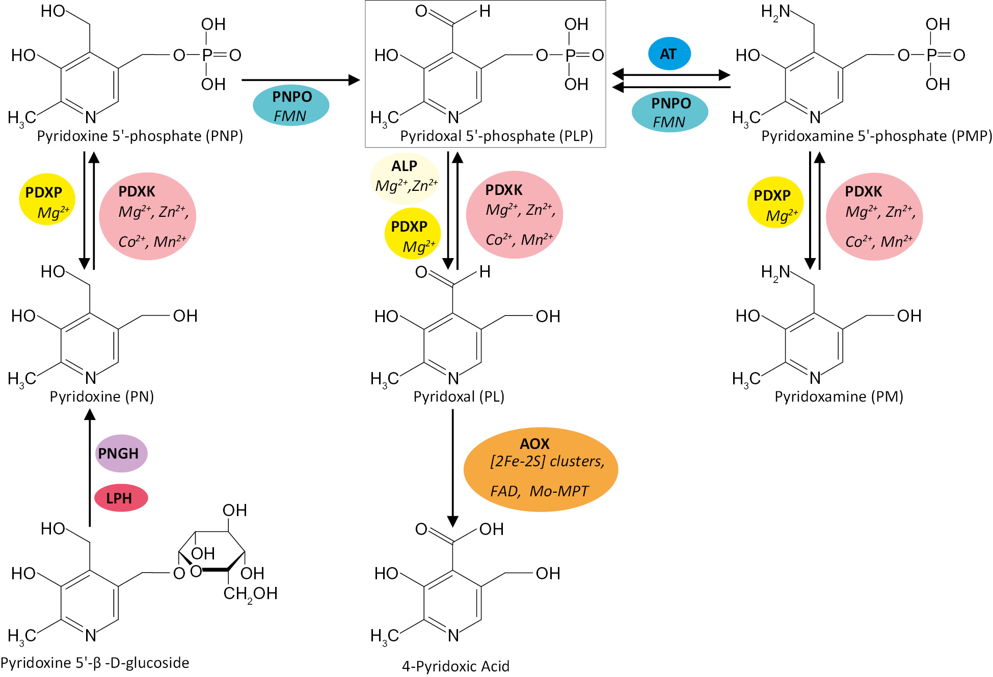 - Whittaker JW. Intracellular trafficking of the pyridoxal cofactor. Implications for health and metabolic disease. Archives of biochemistry and biophysics. 2016 Feb 15;592:20–6.