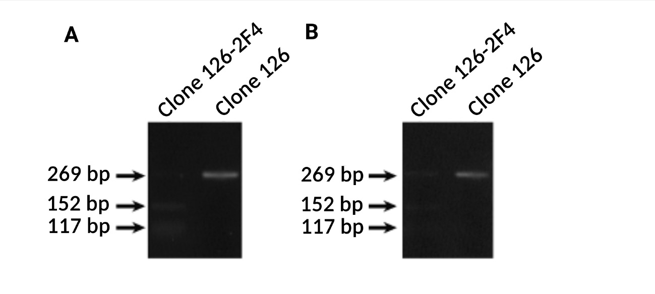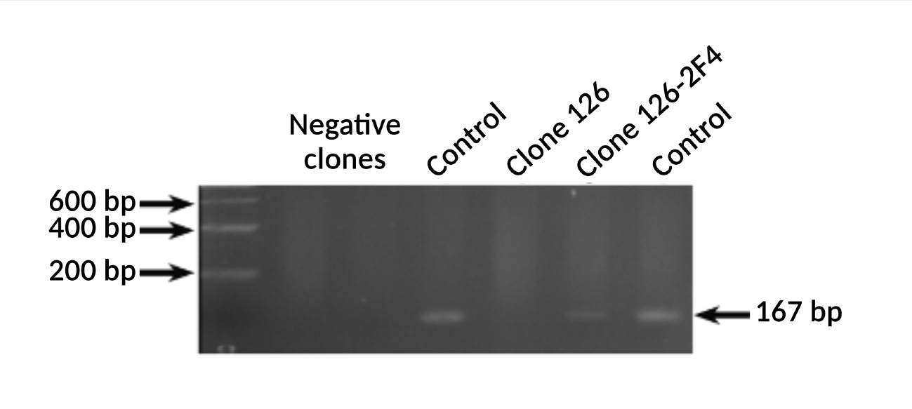 Figure 4 – Analysis of exon IV humanization in genome of clone 126-2-F4 cells. DNA of maternal clone 126, clone 126-2-F4