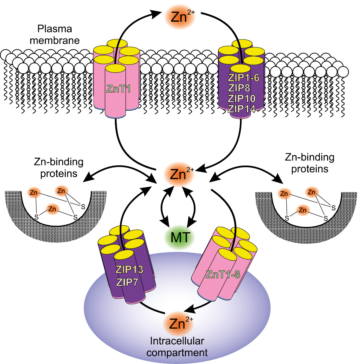 - Kimura T, Kambe T. The Functions of Metallothionein and ZIP and ZnT Transporters: An Overview and Perspective. Int J Mol Sci. 2016 Mar 4;17(3):336. doi: 10.3390/ijms17030336