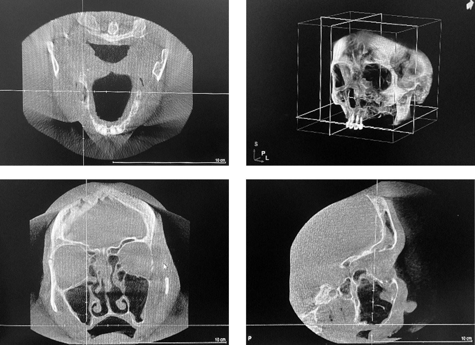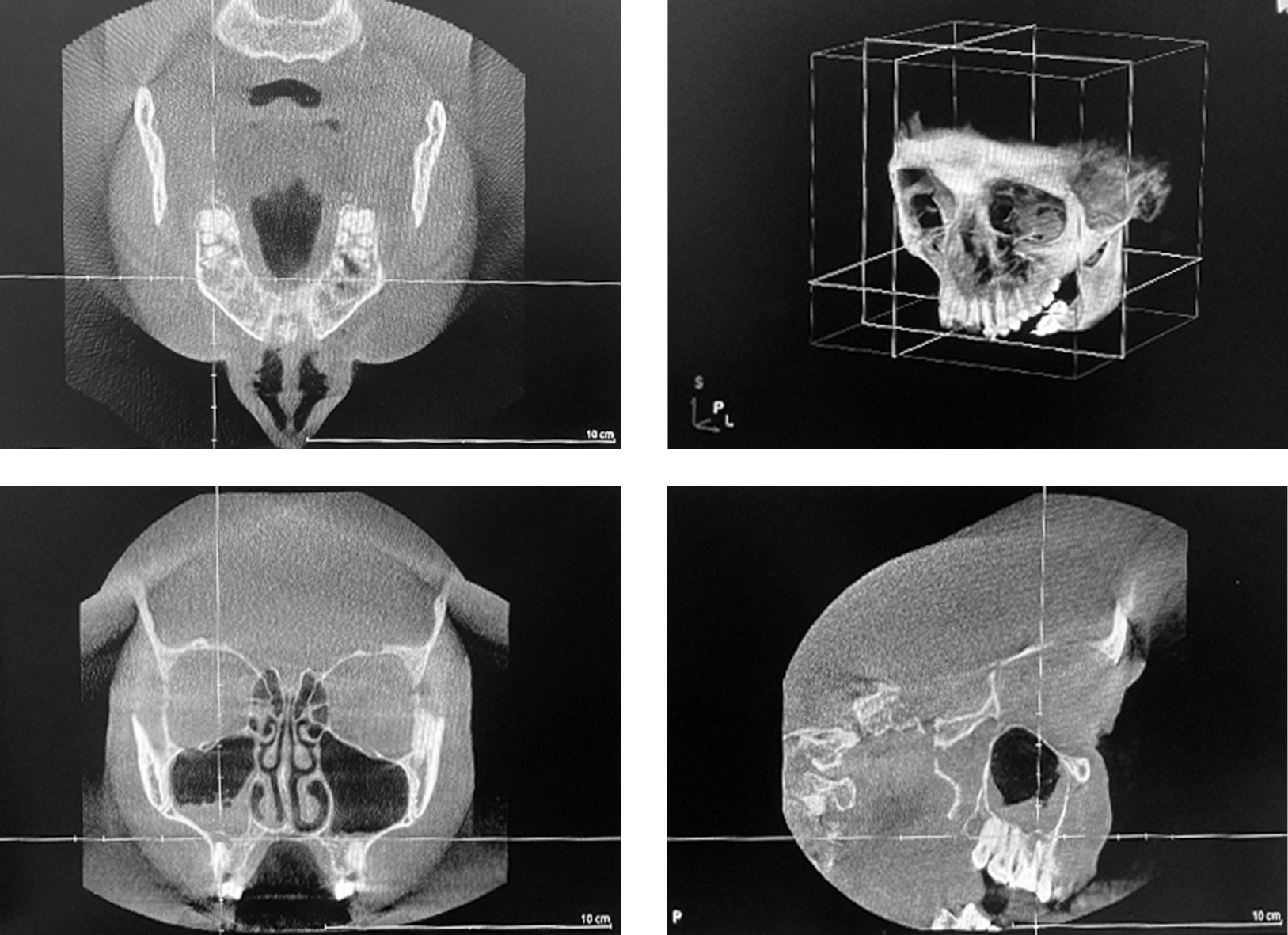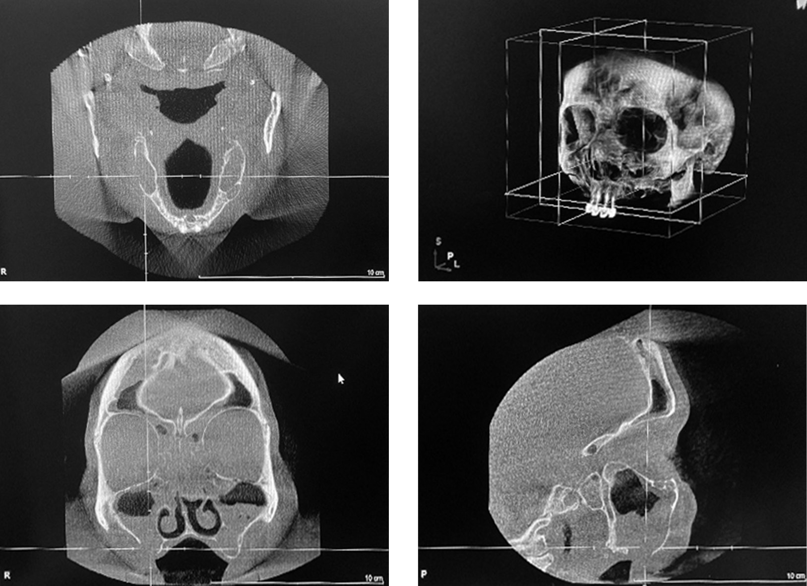 Рис. 4. Конусно-лучевая компьютерная томография: после хирургического лечения околоносовых пазух и челюстно-лицевой области отмечено полное восстановление воздушности обеих верхнечелюстных пазух