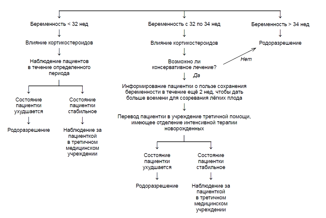 Рис. 2. Лечебная тактика в зависимости от срока гестации.