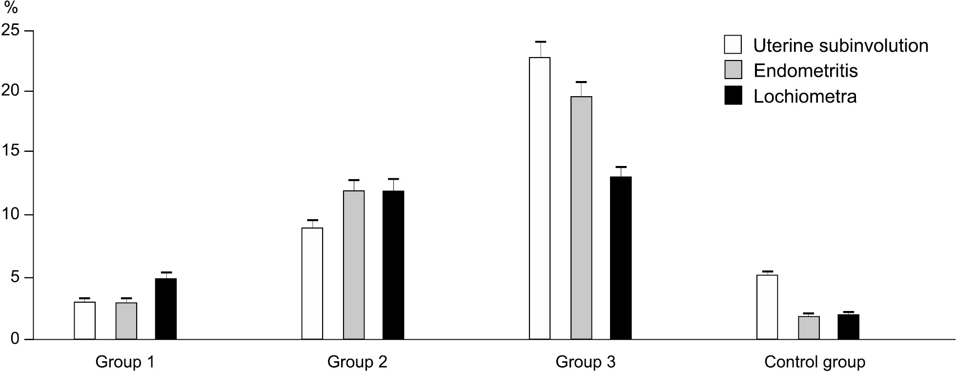 Fig. 5. Postpartum period complications in women of the studied groups.