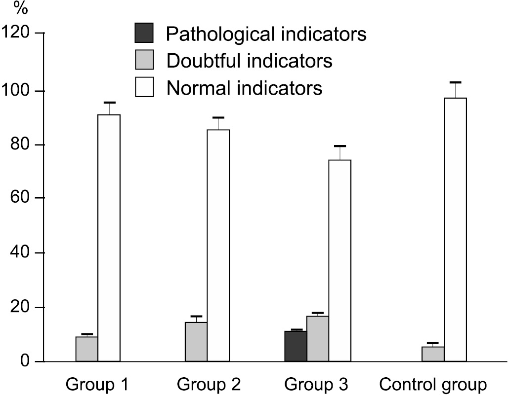 The results were considered statistically significant if the р was less than 0.05. With this indicator, the value of the probability of difference between the compared categories was more than 95%.