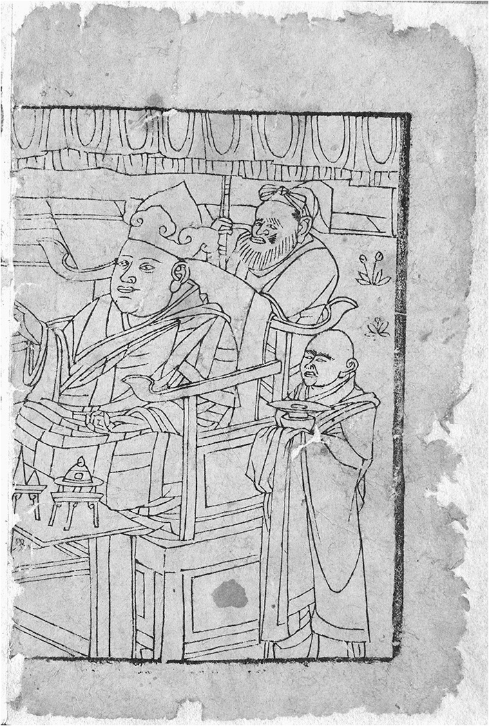 This article is a case study of the engraving in the Tangut Buddhist text Xibi State Preceptor's Compendium of Admonitions to the World 推旃随鬱翩饒毒 written by the Buddhist monk of high rank, State Preceptor Xibi Baoyuan. For a long period of time left and right parts of this illustration existed separately in two editions of this book. For this reason, this text’s author in the illustration was identified incorrectly. The study of this engraving’s fragments allowed to join two engraving parts in their original form and helped to identify the genuine portrait of Xibi.