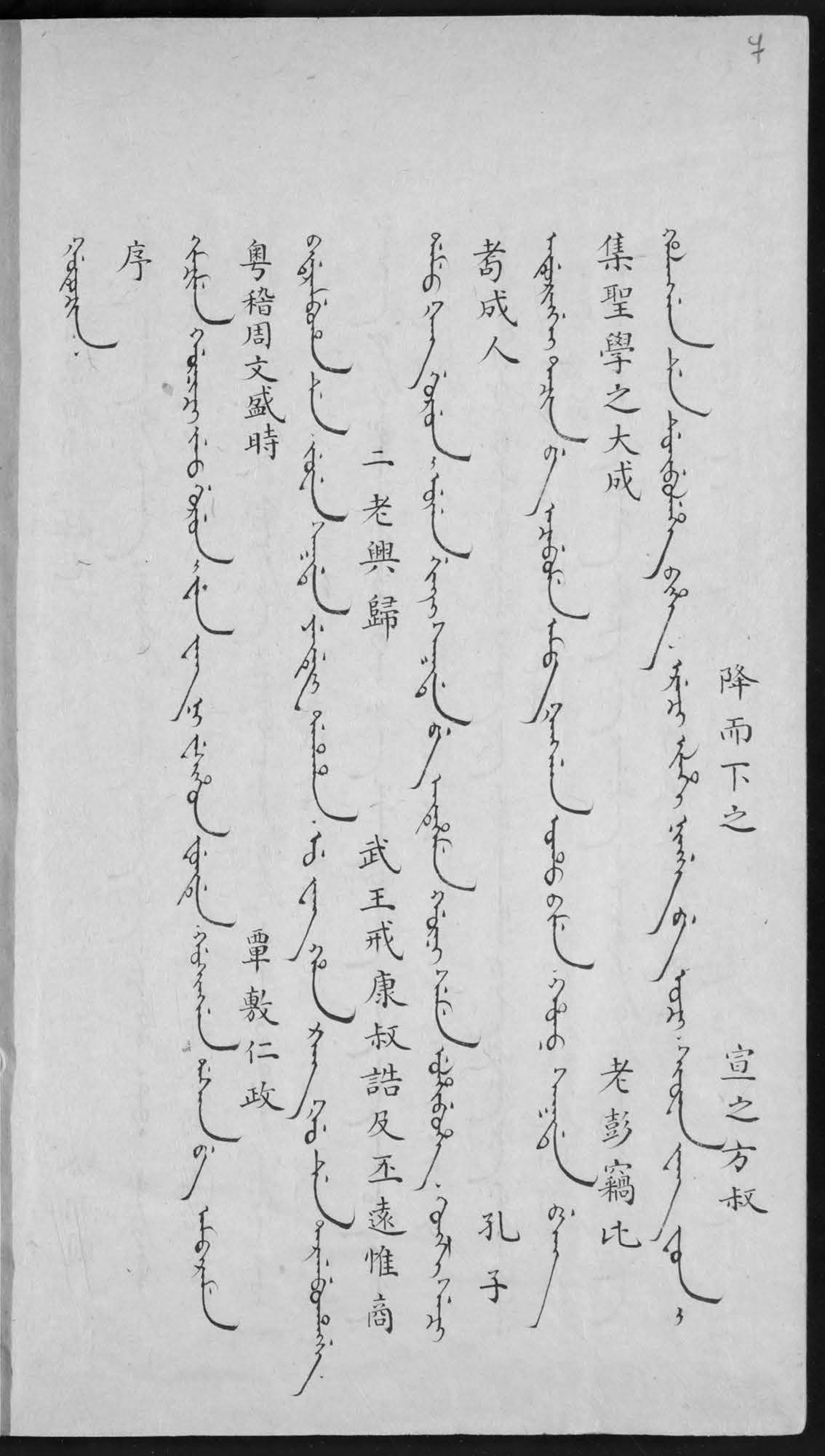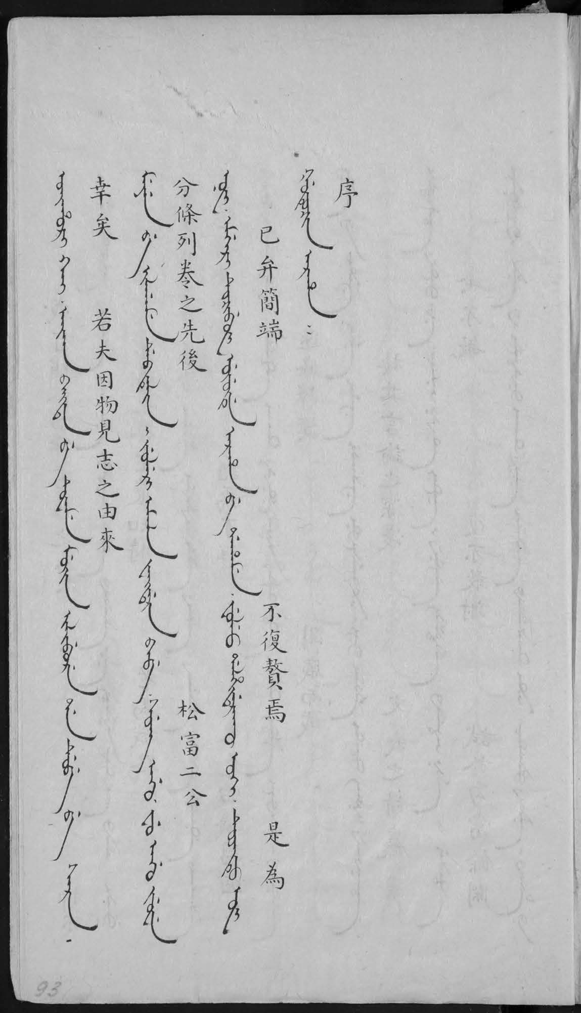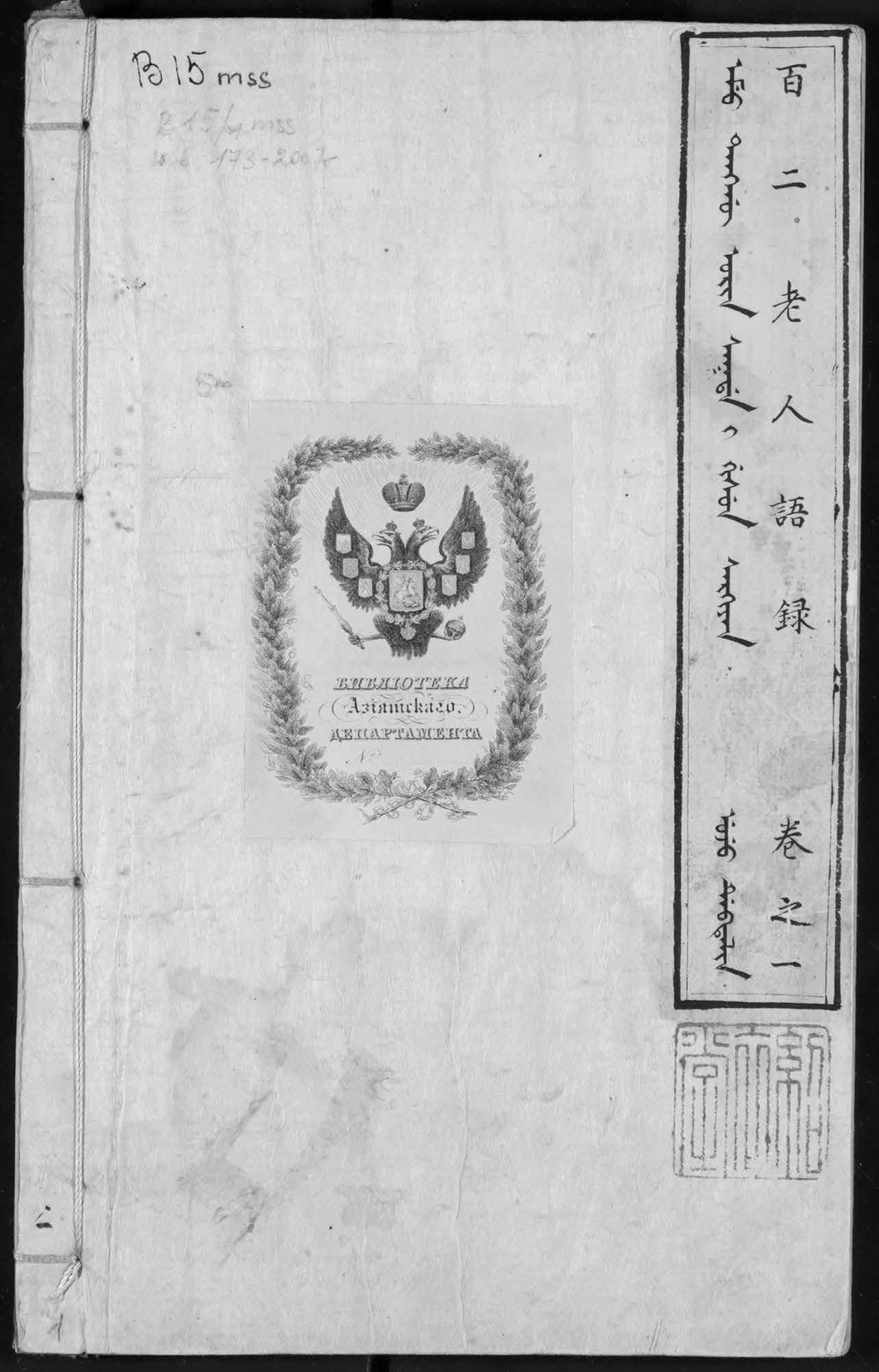 A unique Manchu-Chinese manuscript “The stories of one hundred and twenty old men” Emu tanggû orin sakda-i gisun sarkiyan is kept in the collection of the Institute of Oriental manuscripts. It is a rare sample of Manchu original literature that was compiled by a Mongol Sungyûn (Songyun 松筠) in 1790. The text was edited by Furentai, and in 1809 was translated into Chinese by a famous connoisseur of Manchu and Chinese literature Fugiyûn (Fujun 富俊). The bilingual manuscript from the IOM, RAS bears red personal seals of Fujun and the red seal of the printing house Shao-yi-tang 紹衣堂 that prove that the copy belonged to the translator. The text consists of 120 stories told by 120 old men. They mostly concern the life of simple Manchu bannermen, their everyday problems and financial difficulties often caused by Chinese merchants. The author solves them according to the Confucian moral teachings. Much attention is paid to training of the army and education. Descriptions of daily life in this work are of interest for historians, while its Manchu text is a good source for studies of Manchu original literature and language.