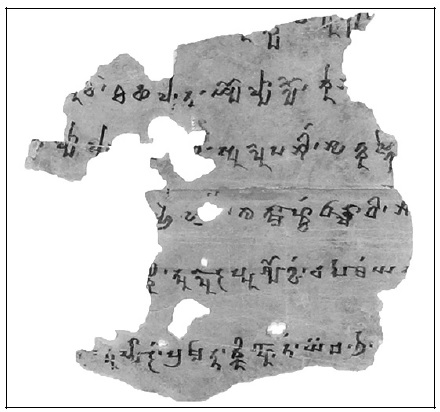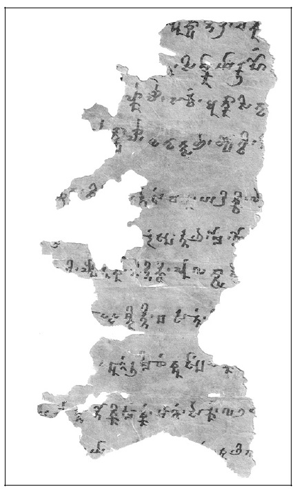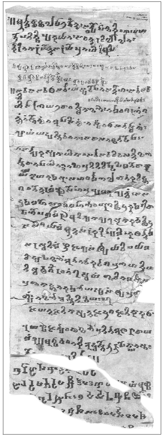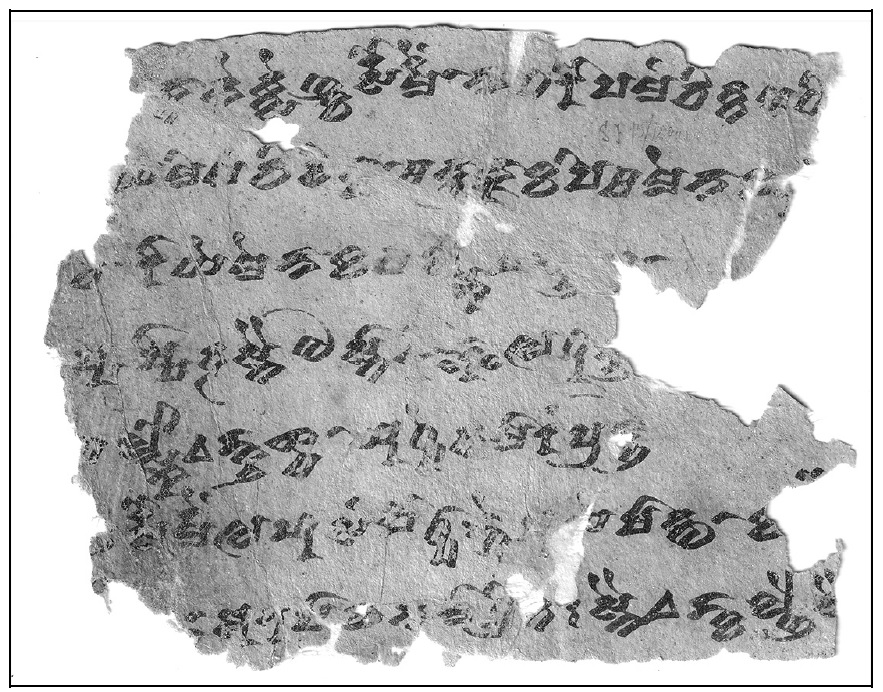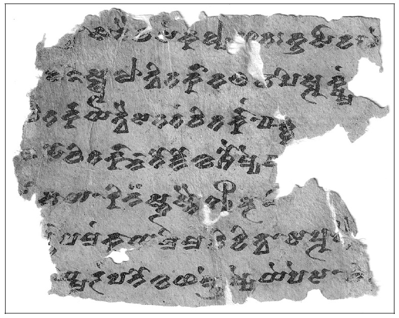 B 04 yenāpi sarasvatī ‘whereby even Sarasvatī’: The only occurrence of Sanskrit in the text and no evidence for a true bilingual text; perhaps an isolated quotation.