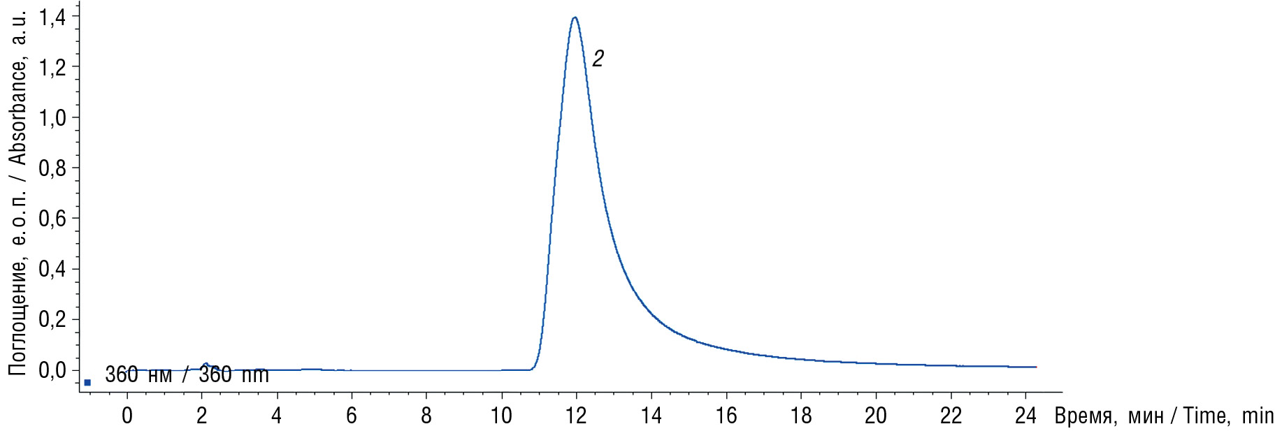Рис. 5. Высокоэффективная жидкостная хроматограмма патулетина (2) / Fig. 5. HPLC chromatogram of patuletin (2)
