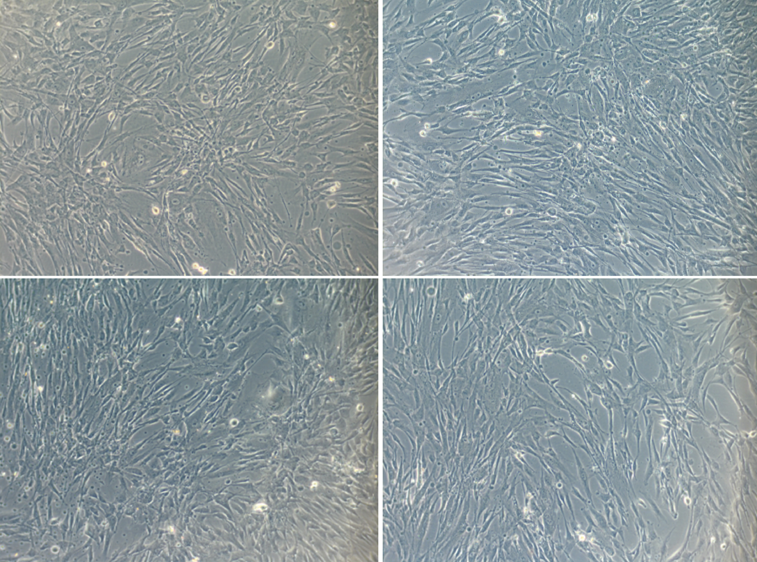 2. Рисунок 1. Морфологический контроль клеток в культуре под действием различных концентраций сГАГ. Световая микроскопия с фазовым контрастом, ув. х 100: А – опытная группа №1 (сГАГ 0,1%); Б – опытная группа №2 (сГАГ 0,5%); В – опытная группа №3 (сГАГ 1%); Г – контрольная группа №1 (культура клеток).