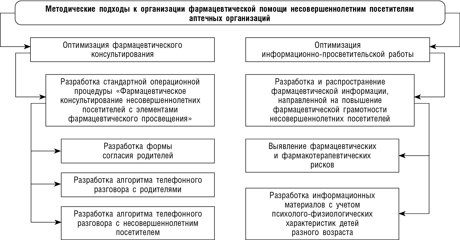 Рис. 1. Методические подходы к организации фармацевтической помощи несовершеннолетним посетителям аптечных организаций