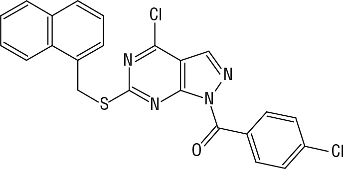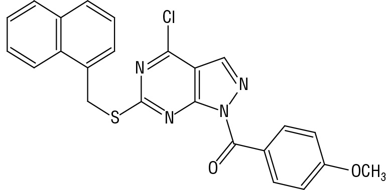 1-(4-Метоксибензоил)-6-[(1-нафтилметил)тио]-4-хлор-1Н-пиразоло[3,4-d]пиримидин | IIIc | >2000 | 1,5 ± 0,1 | 9,6 ± 1 | 9,5 | 90,5 |