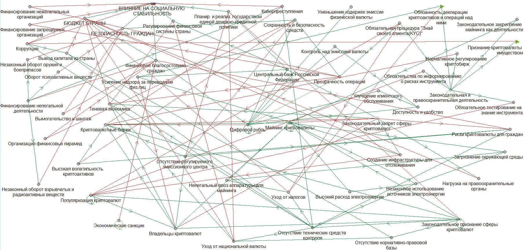 Работа посвящена исследованию государственного регулирования в сфере криптовалют на территории Российской Федерации (РФ). В ходе проведения исследования разработана сценарно-когнитивная модель предметной области, а также получены сценарии возможных вариантов реализации управления социально-экономическими системами. Целью моделирования является оценка влияния криптовалюты на социальную стабильность. В ряде модификаций модели учитывались предложения регулирующих органов РФ и возможные направления правового регулирования.
