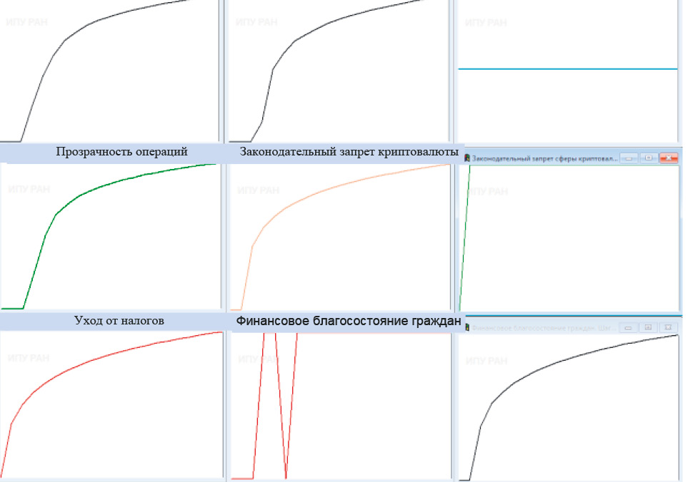 Данный сценарий с точки зрения влияния на социальную стабильность является достаточно перспективным, но стоит учитывать тот факт, что бесконтрольное использование криптовалюты ведет к весьма негативным последствиям, которые могут появиться на столь дальнем отрезке времени, что представленная модель не позволяет учесть их. Если рассматривать имитационную модель подробнее, то законодательное признание криптовалюты с факторами отсутствия нормативно-правовой базы и технических средств контроля приведут к увеличению киберпреступлений, а также к уходу от национальной валюты, именно о таких рисках предупреждал ЦБ РФ в своем докладе о криптовалюте.