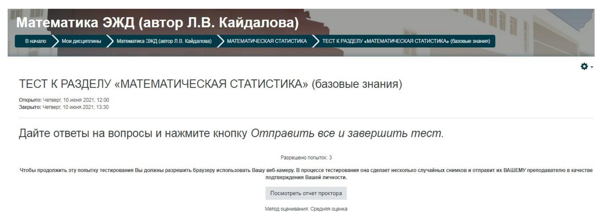 При тестировании обучающийся должен разрешить браузеру использовать веб-камеру. В процессе тестирования она сделает несколько случайных снимков и отправит их преподавателю в качестве подтверждения личности тестируемого (рис. 1).