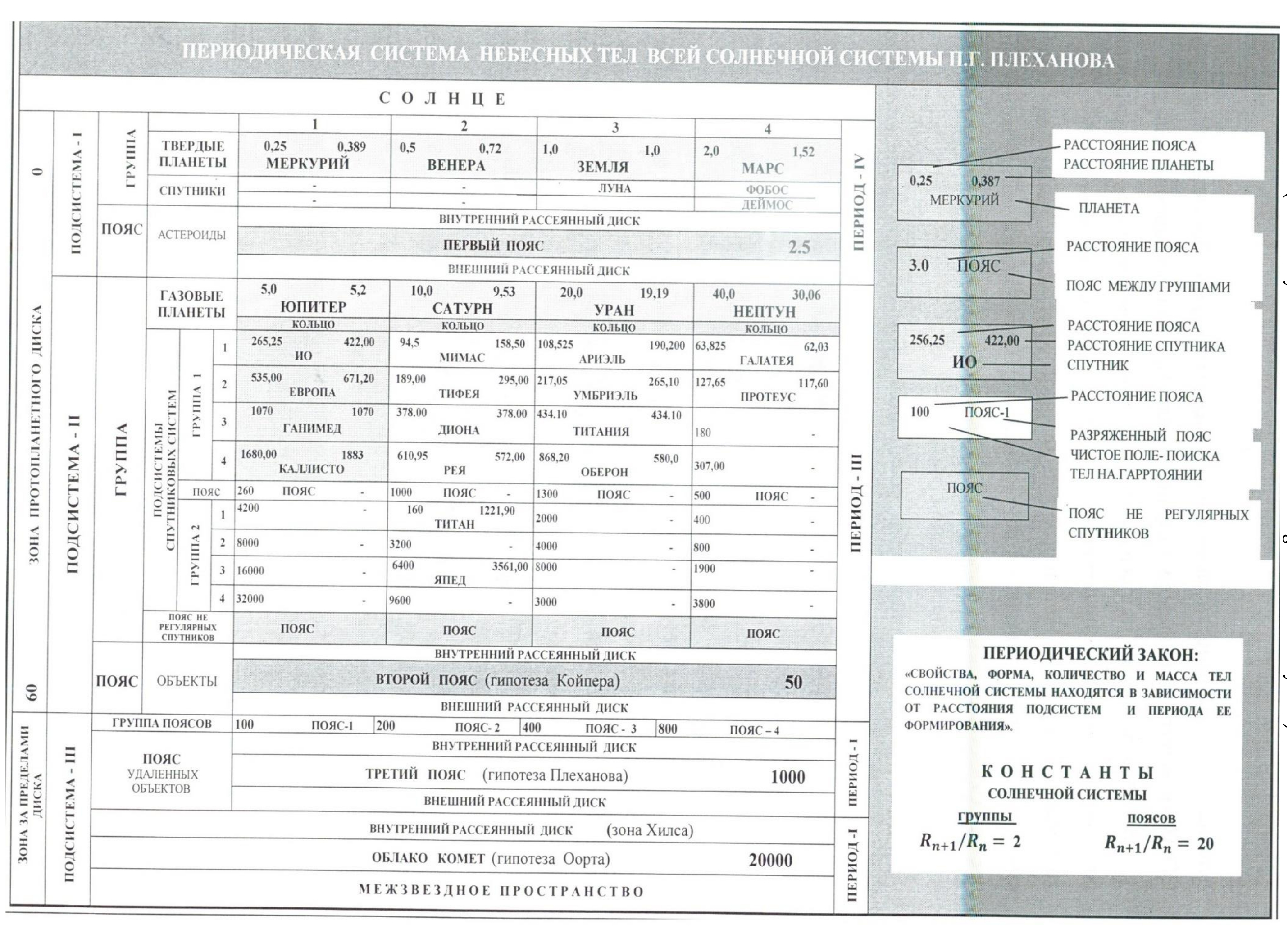 Рис. 1. Периодическая система небесных тел всей Солнечной системы