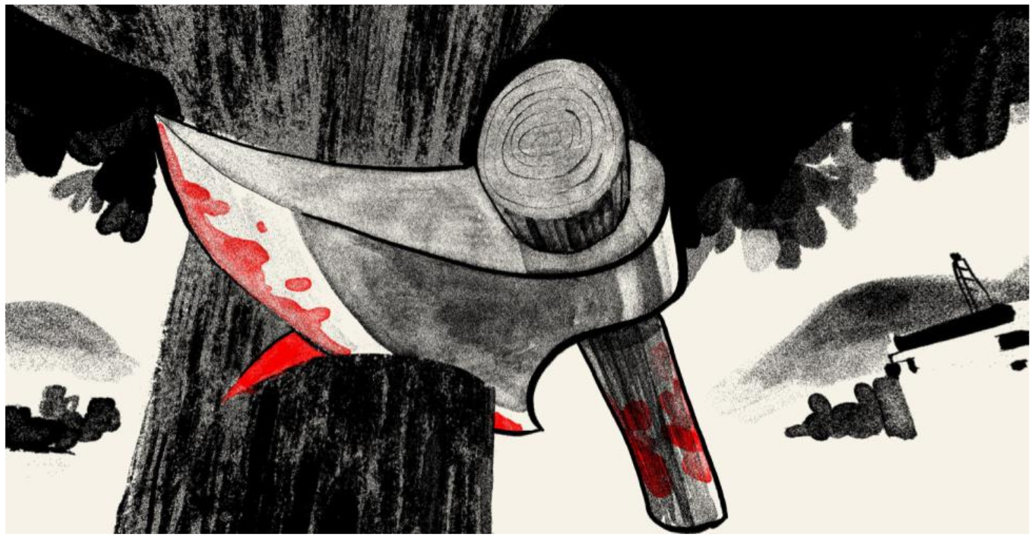 Иллюстрация 360°: возможности «расширенного» повествования. Перейдем к третьему проекту, представляющему собой уже не коммерческую иллюстрацию, а репортаж журналиста-исследователя, и на его примере попробуем выявить, какой интерес может представлять для художника панорамная иллюстрация, какие выразительные возможности она перед ним открывает (и которые, возможно, отсутствуют или не проявлены до такой степени в других медиа). Для этого рассмотрим проект Кристофа Нимана (Christoph Niemann) «Мое путешествие в демилитаризованную зону: скетчбук 360°» («My Trip to the DMZ: A 360-Degree Sketchbook»), который сделан для «Нью-Йорк Таймс» [9] (рис. 3). Демилитаризованная зона (ДМЗ), о которой говорится в названии проекта – это зона на границе Северной и Южной Кореи. Речь идет о демаркационной линии, разделяющей две страны, по обе стороны которой находится ДМЗ. К. Ниман выделяет эту линию алым цветом. Зритель будто бы оказывается внутри скетчбука К. Нимана – перед ним возникают некие наброски, словно нарисованные углем, зернистые текстуры, эффектная палитра: черный, белый, серый и ярко-красный. Отдельно следует сказать о красном – этот цвет усиливает ощущение напряжения и часто используется художником не только как средство композиции, но и доносит до зрителя эмоционально насыщенную информацию.