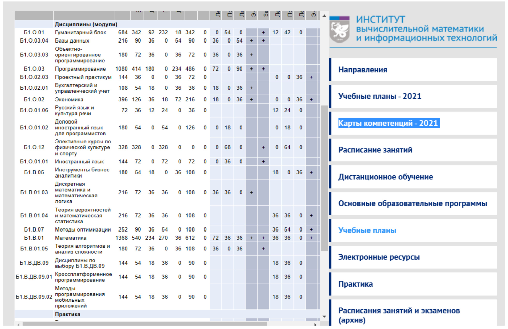 Рис. 2. Учебный план направления подготовки 38.03.05 Бизнес-информатика в КФУ