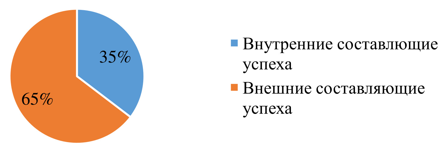 Рис. 1. Процентное соотношение частотности упоминания лексики в пределах «внутренней» и «внешней» составляющих успеха