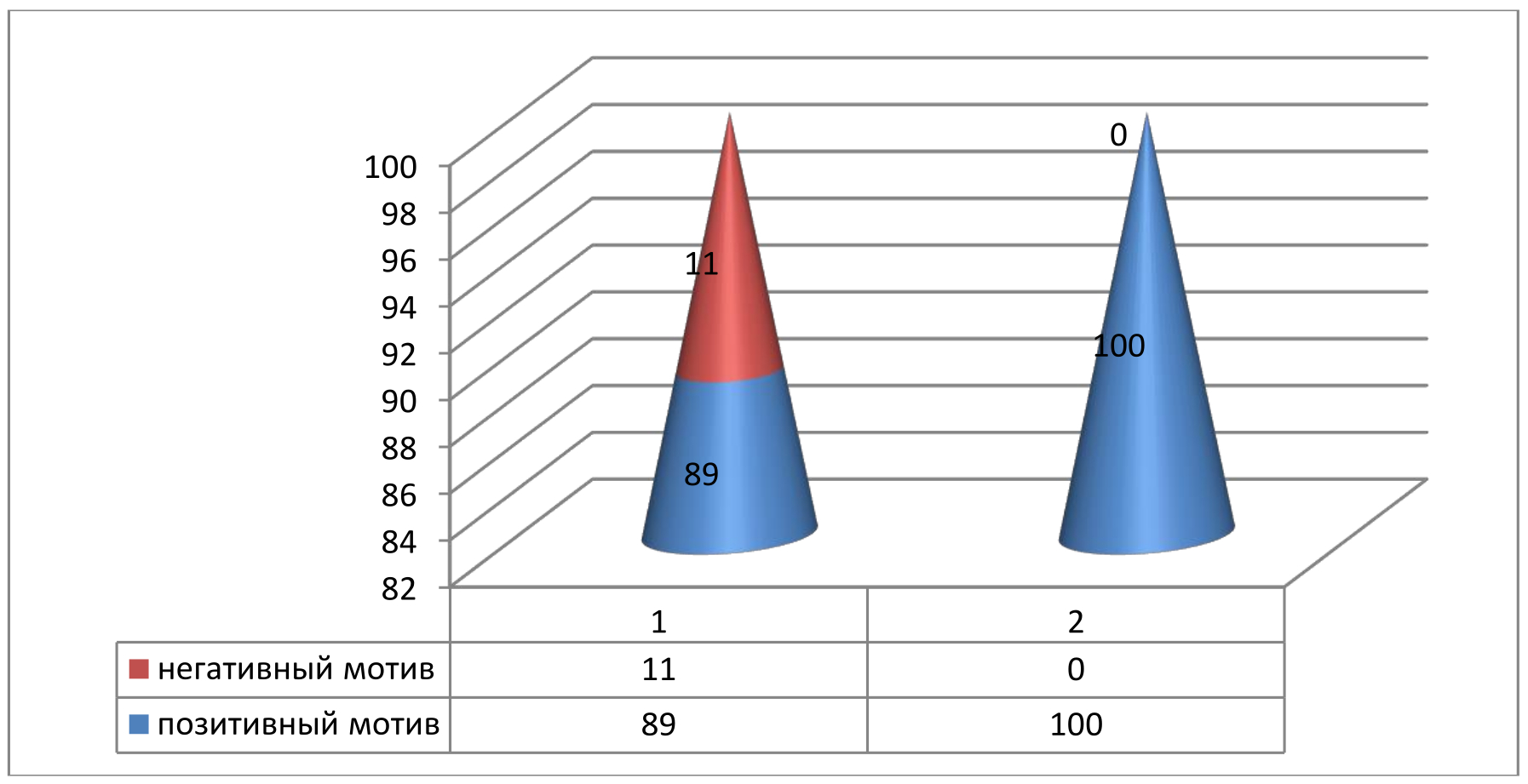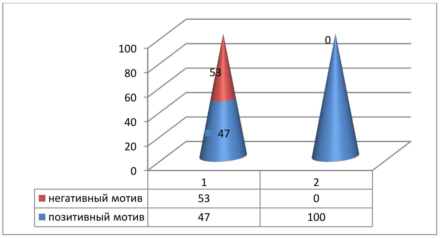 Подобные изменения объясняются тем, что в процессе работы у студентов-хореографов экспериментальной группы, благодаря включению в учебно-образовательный процесс отобранных нами методов стимулирования мотивации к деятельности (создание ситуаций познавательной новизны, эмоциональных переживаний, познавательной дискуссии, занимательности, хореографических игр, креативных ситуаций, ситуаций успеха и планирования будущего) сформировался позитивный мотив к деятельности.