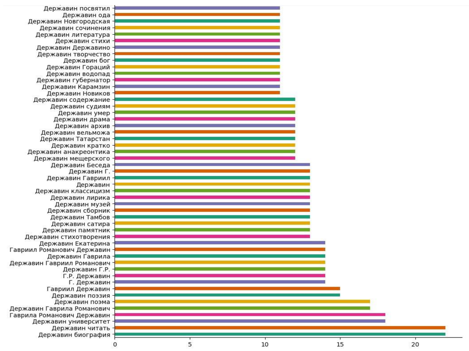 Были автоматически исключены контексты, относящиеся к однофамильцам Г.Р. Державина (прежде всего, А. Державину и М. Державину): «Андрей Державин», «Михаил Державин», «Державин музыкант», «Державин актер», «Державин музыка», «Державин фильмы», «Державин песни», «Державин слушать», «Державин роли», «Державин играл», «Державин пел» и др.