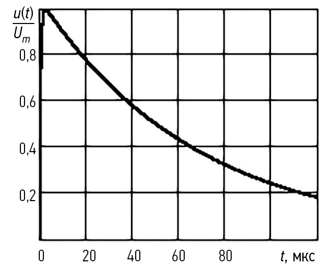 Приведенная в табл. 1 форма импульсных помех по стандартам ГОСТ IEC 61000-4-4-2016 [1], ГОСТ IEC 61000-4-5-2017 [2] может быть описана биэкспоненциальным импульсом: