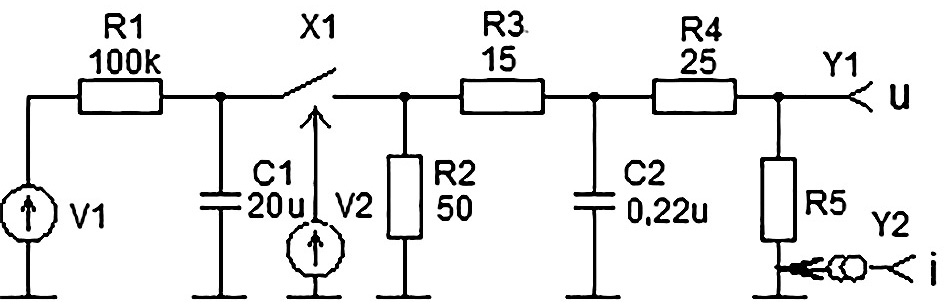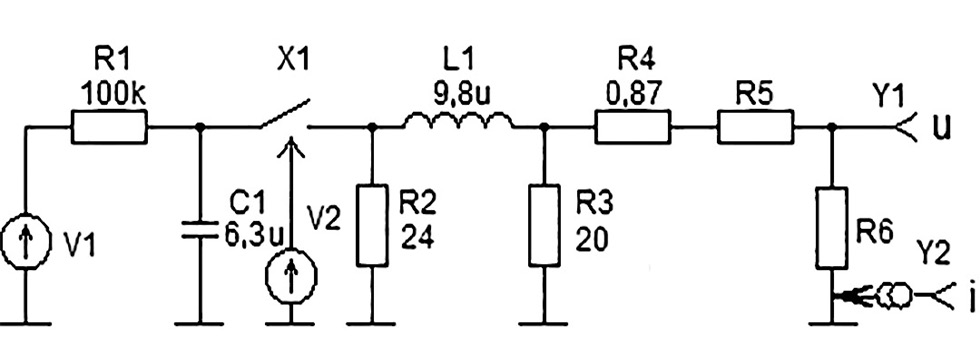 Генератор микросекундных импульсных помех длительностью 700 мкс по ГОСТ IEC 61000-4-5-2017 моделируется схемой на рис. 5.