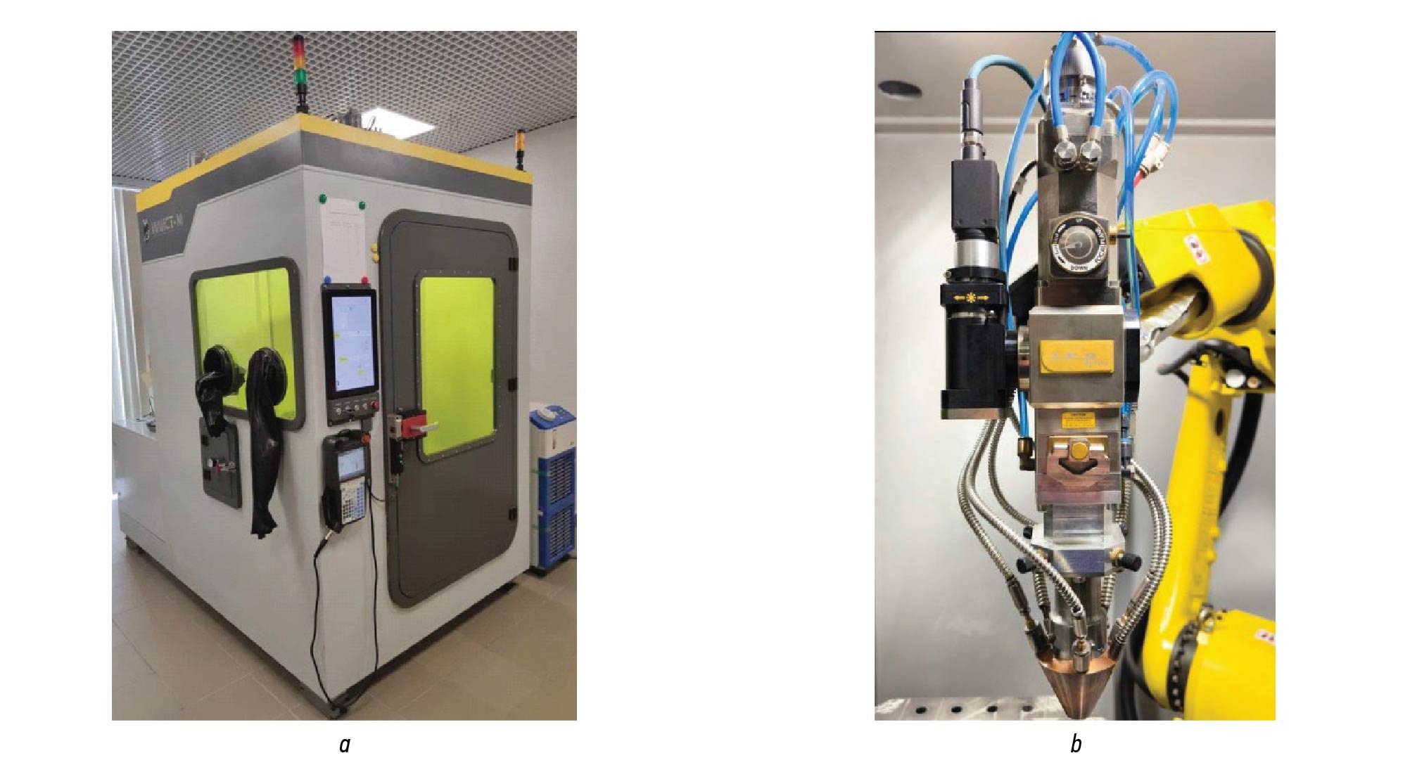 Fig. 3. Laser cladding equipment: a, laser direct deposition unit ILIST-M; b, process tool.
