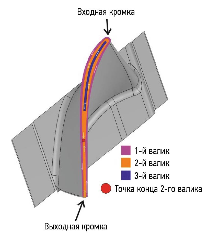 Рис. 7. Стратегия наплавки пера рабочей лопатки.