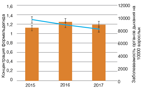 Материал и методы. За 2015–2017 гг. изучена динамика уровней загрязнения атмосферного воздуха формальдегидом и