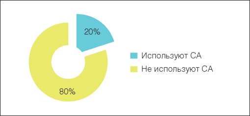Комплаентность (приверженность детей к лечению) в отношении использования речевого процессора кохлеарного импланта составила 98% (49 детей), 1 ребенок (2%) отказался от ношения речевого процессора ввиду сопутствующего расстройства психического развития, выявленного на послеоперационном этапе. Сорок детей (80%) не использовали СА ввиду различных причин. Что касается использования бимодальной стимуляции (КИ+СА), то лишь 10 детей (20%) практиковали ношение слухового аппарата на ухе, контралатеральном имплантированному (рисунок 2). У всех детей, использовавших СА, настройка была адекватной. Всем детям указанной категории удалось провести речевую аудиометрию. Среди них у 8 детей (16%) отмечались субъективная удовлетворенность бимодальной стимуляцией и объективные признаки эффективности использования СА. У 2 детей (4%) отмечалась лишь субъективная удовлетворенность результатами использования СА, не подтвержденная инструментально. У детей с эффективным использованием бимодальной стимуляции, подтвержденным инструментально, разборчивость речи на имплантированном ухе достигала 100%.
