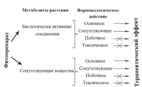Рисунок 2. Модель формирования фармакотерапевтического эффекта лекарственных растительных препаратов.