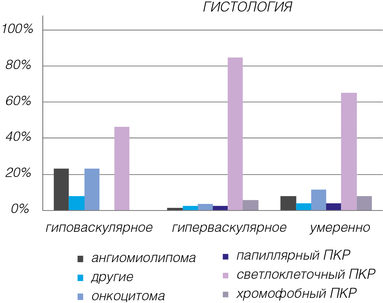 Рисунок 2. Соотношение различных гистологических картин для всех типов васкуляризации.