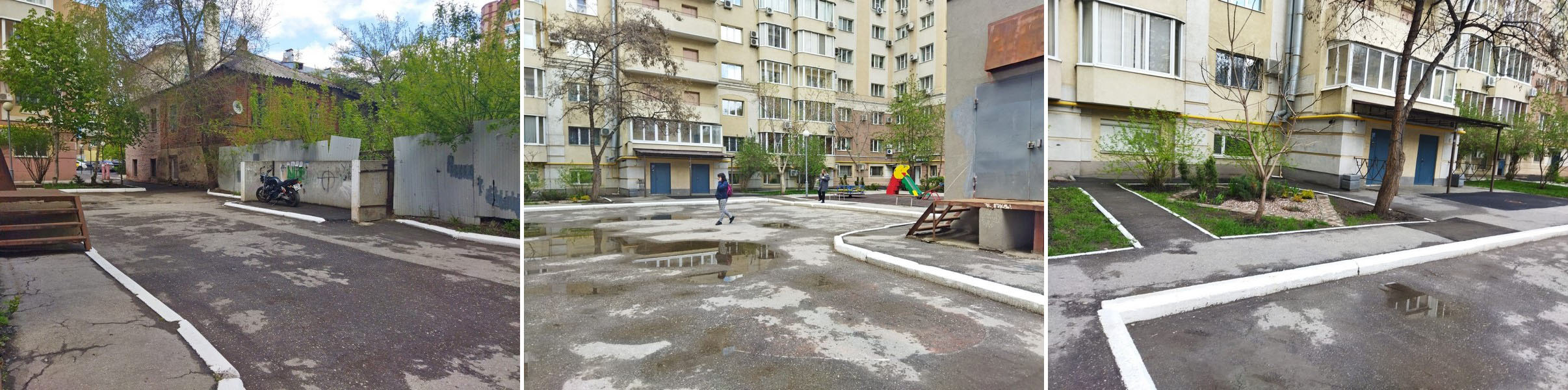 - Обсуждение и символическое закрепление за пользователями конфликтных территорий там, где возможен компромисс. Выработка ответственных решений (с пониманием того, кому и зачем они нужны, как они будут существовать дальше после реализации проекта). В случае невозможности договора, необходимо провести реорганизацию пространства и наделение его новой функцией. Часть конфликтов находится в социальной и юридической сфере, решить их можно только внутри сообщества (формированием социальных норм, культуры общения и взаимодействия в данном дворе).