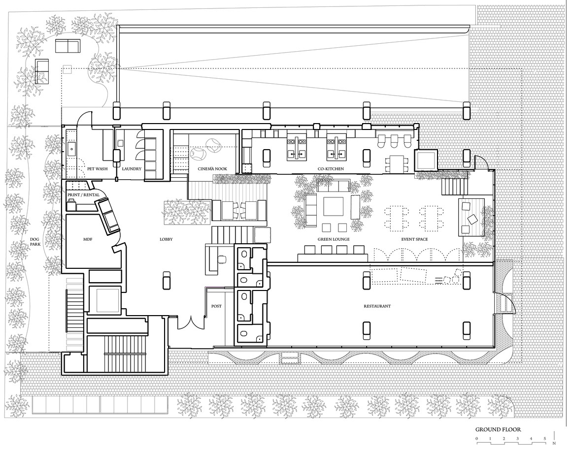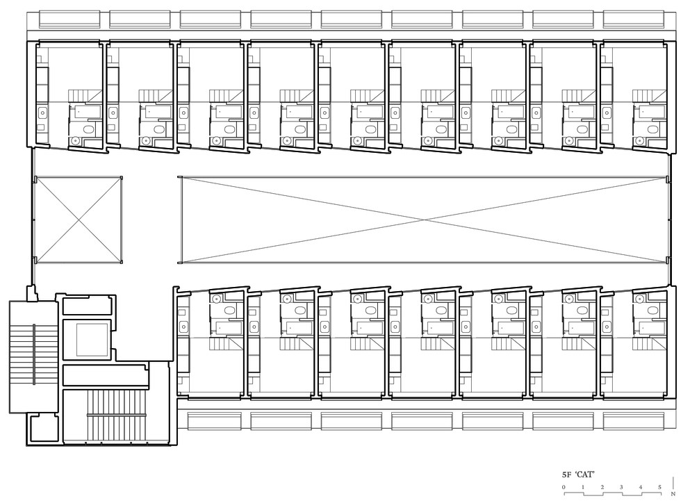 Рис. 2: Treehouse Coliving Apartments / Bo-DAA; а – фото объекта; б – план 1-го этажа; в – план 5-го этажа [6] | ||