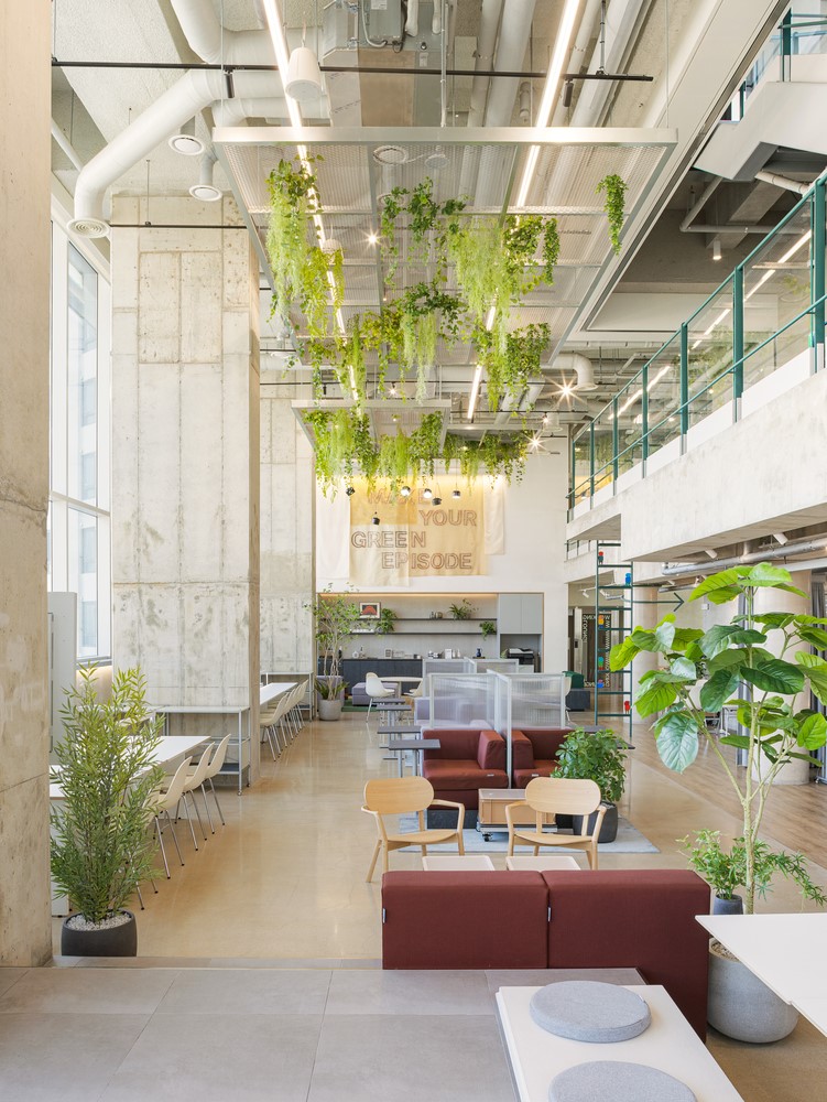 При проектировании делался приоритет на экологичность объекта. Больше 80% мебели создано из переработанных материалов, что должно снизить выбросы углерода. Также большинство отделочных материалов разлагаются естественным путем или подходят для вторичной переработки, уменьшая число промышленных отходов.