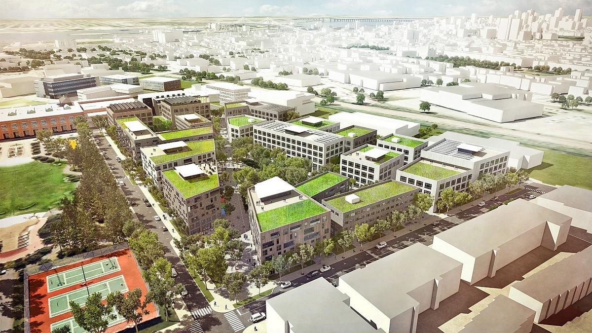 3. Рис. 2. Вид на Центральный «зеленый» квартал Технополиса Ангус с высоты птичьего полета. Монреаль (Канада). Зеленые технологии ландшафтного дизайна способствуют формированию комфортных пространств и эффективному биоразнообразию среды (journalmetro.com)