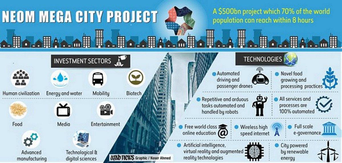 Начавшееся в 2017 году еще до кризисной ситуации в мировой экономике строительство нового амбициозного «города роботов» НЕОМ при участии международных инвесторов обретает реальные черты. На каждом из 10 выделенных участков под строительство на глобальном «перекрестке» между Египтом, Иорданией, Израилем, Саудовской Аравией и Ираном на побережье Красного моря разворачивается «зеленое» строительство города будущего (Рис.4).
