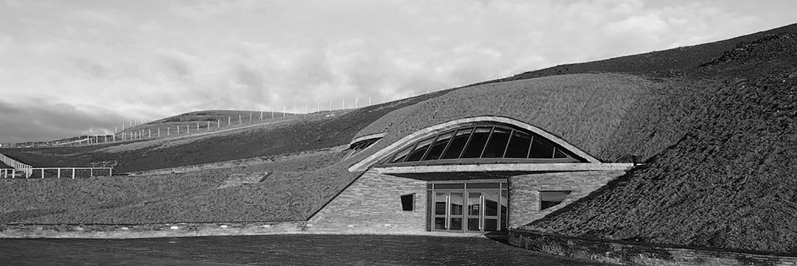 Туристический центр Утеса Мохер (Cliffs of Moher) в графстве Клэр, Ирландия, был разработан на основе концепции подземного здания с учетом местных природных материалов и особенностей рельефа, чтобы свести к минимуму его воздействие на окружающий ландшафт, но и спроектировать удобный информационный центр для посетителей. Ведь вид с утёсов привлекает ежегодно около миллиона туристов - в 2006 году утёсы были признаны самой популярной у туристов достопримечательностью в Ирландии. Учитывая уникальный характер участка, основным приоритетом при проектировании было использование существующего склона и органических форм (рис. 3). Это решение позволяет объекту не конкурировать с естественной привлекательностью «утесов», не отвлекая от них внимание. Здание туристического центра не имеет фасадов как таковых, за исключением обращенного на юг фрагмента, где можно увидеть только входной проем и верхние окна ресторана. Главный вход незаметно вписан в реконструированный ландшафт, так что его видно только при подходе к центру.