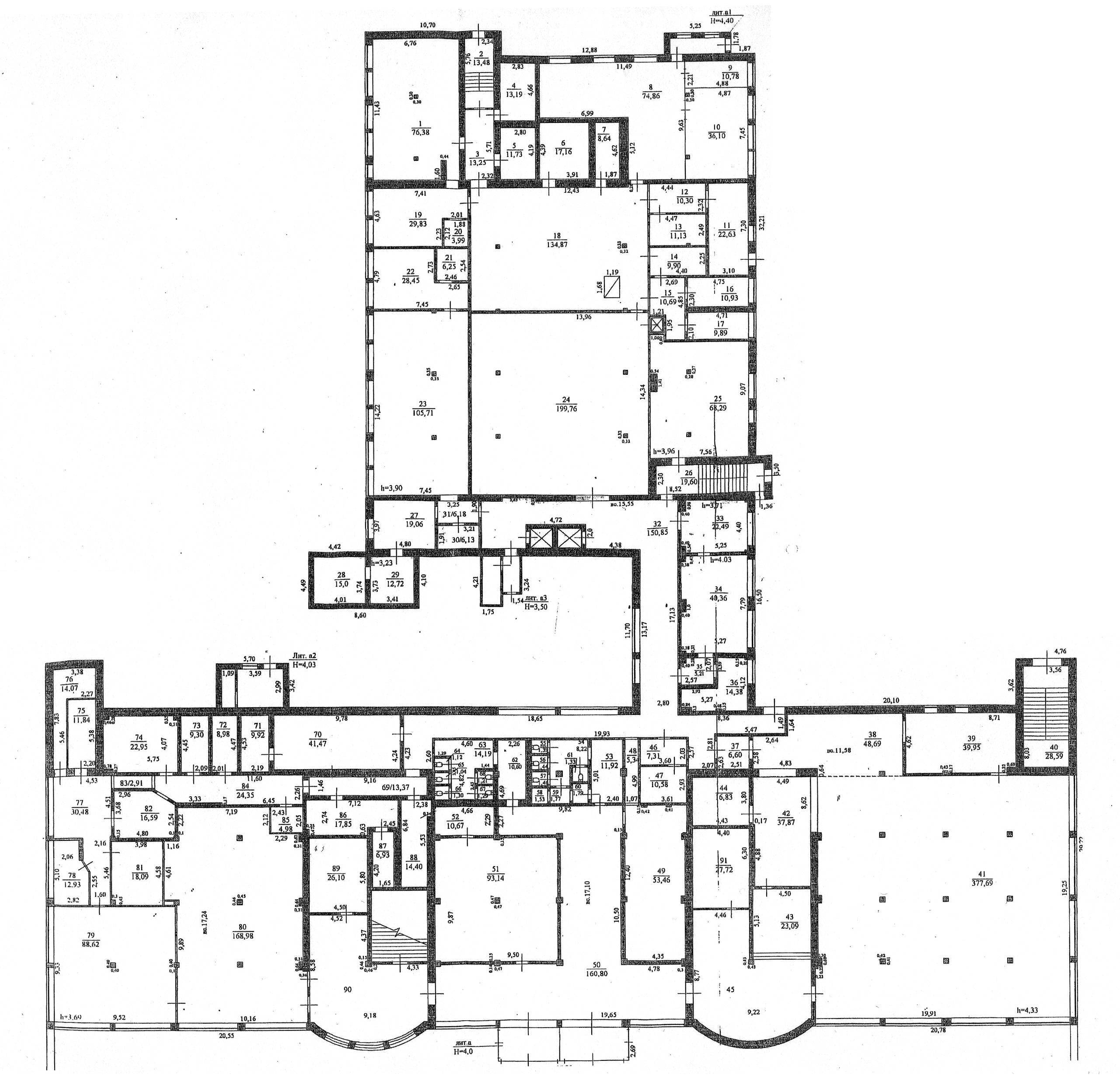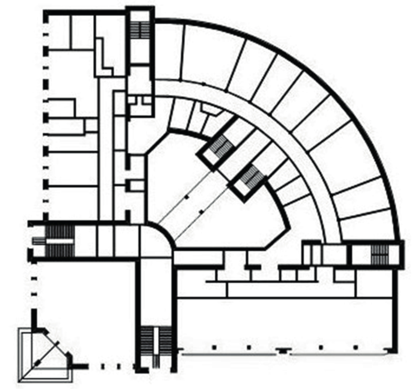 Это был гигант общественного питания, рассчитанный на 12000 обедов. В плане лестничные блоки похожи на двигатели самолета.