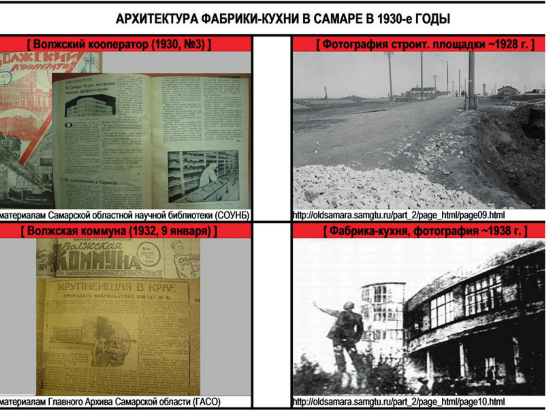 Рис.9. Архивные фото газет и строительной площадки фабрики-кухни в Самаре