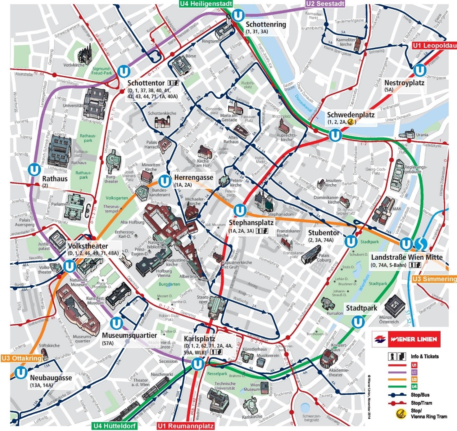 Общественный транспорт в Вене (Wiener Linien) представлен метрополитеном (U-Bahn), электропоездами (S-Bahn), трамваями (Strassenbahn) и автобусами (Autobus). Транспорт курсирует строго по расписанию. Названия каждой станции объявляются в любом виде транспорта, а также перечисляются все другие виды транспорта, на которые пассажир может пересесть на остановках.