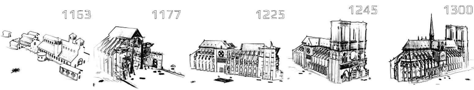 Рис. 1. Этапы строительства собора в период XII–XIV вв. (world-architects.com)