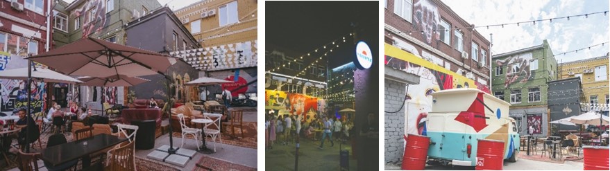 Арт-кластер «Артист» – это проект ревитализации. В процессе реконструкции здания бывшего промышленного предприятия архитектор создает общественное пространство, нацеленное на привлечение местных локальных бизнес-резидентов. Сохранение оригинального фасада с минимумом изменений сохраняет особенный дух, атмосферу этого места. Идея проекта заключается в сохранении аутентичных деталей и в формировании среды удобной и приятной для работы и отдыха (рис. 6). В выходные и праздничные дни в кластере «Артист» полная загрузка. Регулярно проходят концерты и стендапы, выступают известные лекторы и музыканты. «Артист» занял особое место на культурной карте Самары как территория новой общегородской активности, реализованной за счет потенциала внутриквартальной территории.
